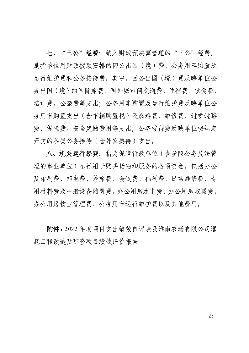 附件:2022年度项目支出绩效自评表及淮南农场有限公司灌溉工程改造及配套项目绩效评价报告
