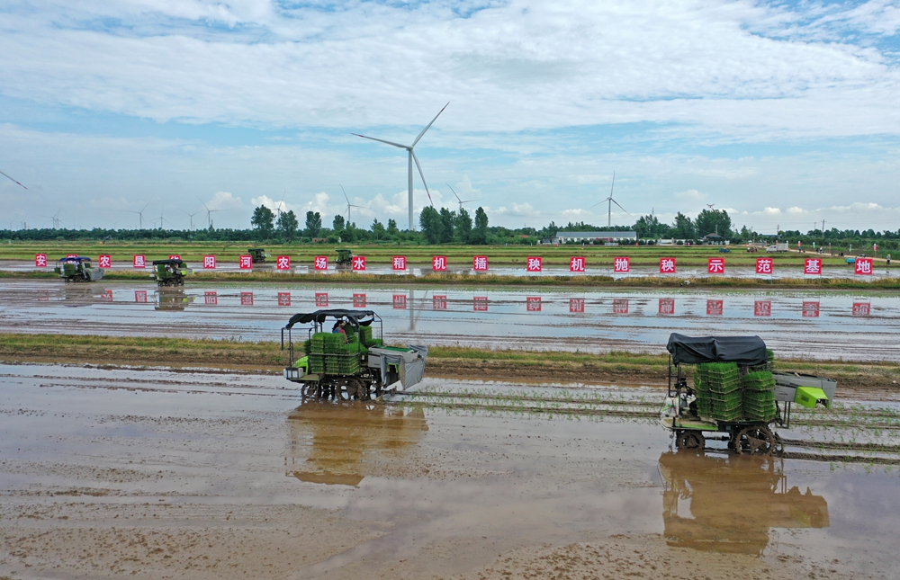 地处沿江区域的华阳河农场夏种节点相对较早,为推进垦区各场“双机”技术综合应用,今年5月中旬,集团决定在华阳河农场召开“双机”现场观摩会,邀请安农大专家教授和省厅专家与会作进一步指导,把观摩会办成“科技强农、机械强农”的培训“大课堂”。
