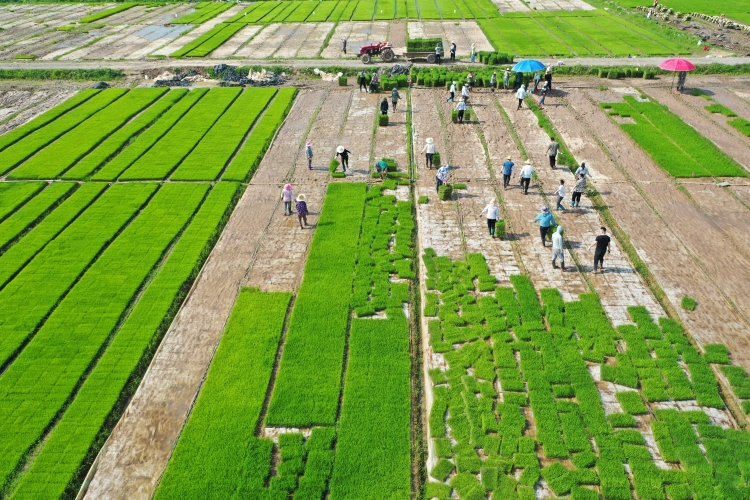 以悟促干,汲取奋进之力。为赶在秧苗适龄期完成机抛(插)任务,6月17日—18日,青年理论学习班组成青年突击队至农科所育秧基地抢搬秧苗。天气炎热,但青年学员们干劲十足,起秧苗、运秧苗,分工明确,配合默契。活动期间共完成70亩稻田秧苗起运任务。