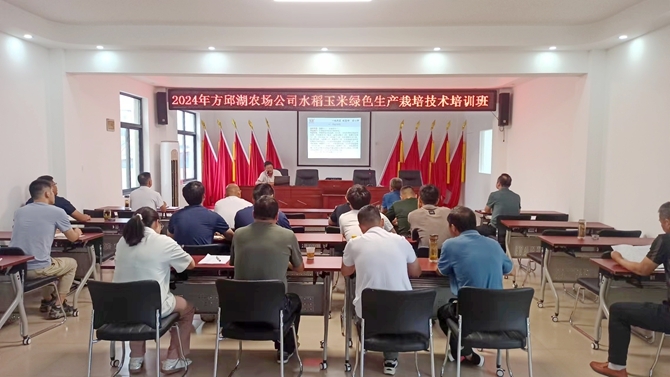 7月12日,为积极创建全国绿色食品原料标准化生产基地,落实作物生产全程绿色种植技术,方邱湖农场公司举办水稻玉米绿色生产技术培训会,全场农业单位、部门管理人员参加了培训。