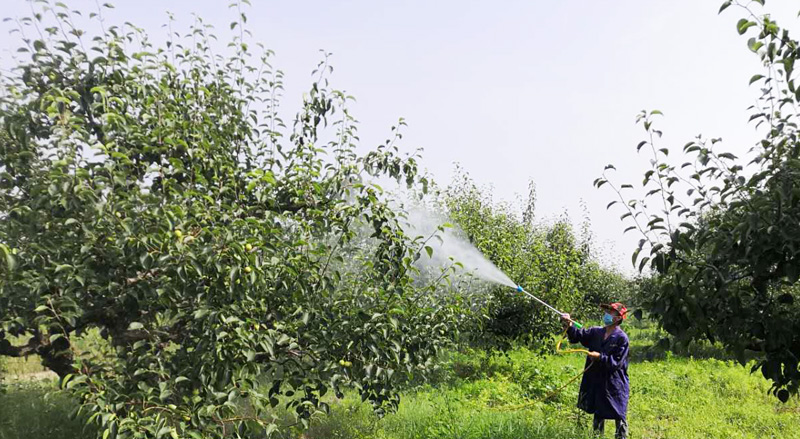 砀山果园场公司多措并举加强果园的植保工作,一方面公司技术人员深入果园现场指导承租人员落实植保方案,另一方面要求承租人员抢抓晴好天气,及时喷药和采取人工防治等植保措施,以确保病害的及时有效控制,努力为实现水果的丰产丰收奠定良好的基础。(砀山果园场公司)