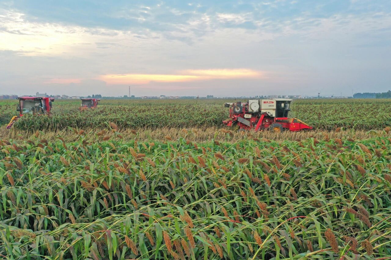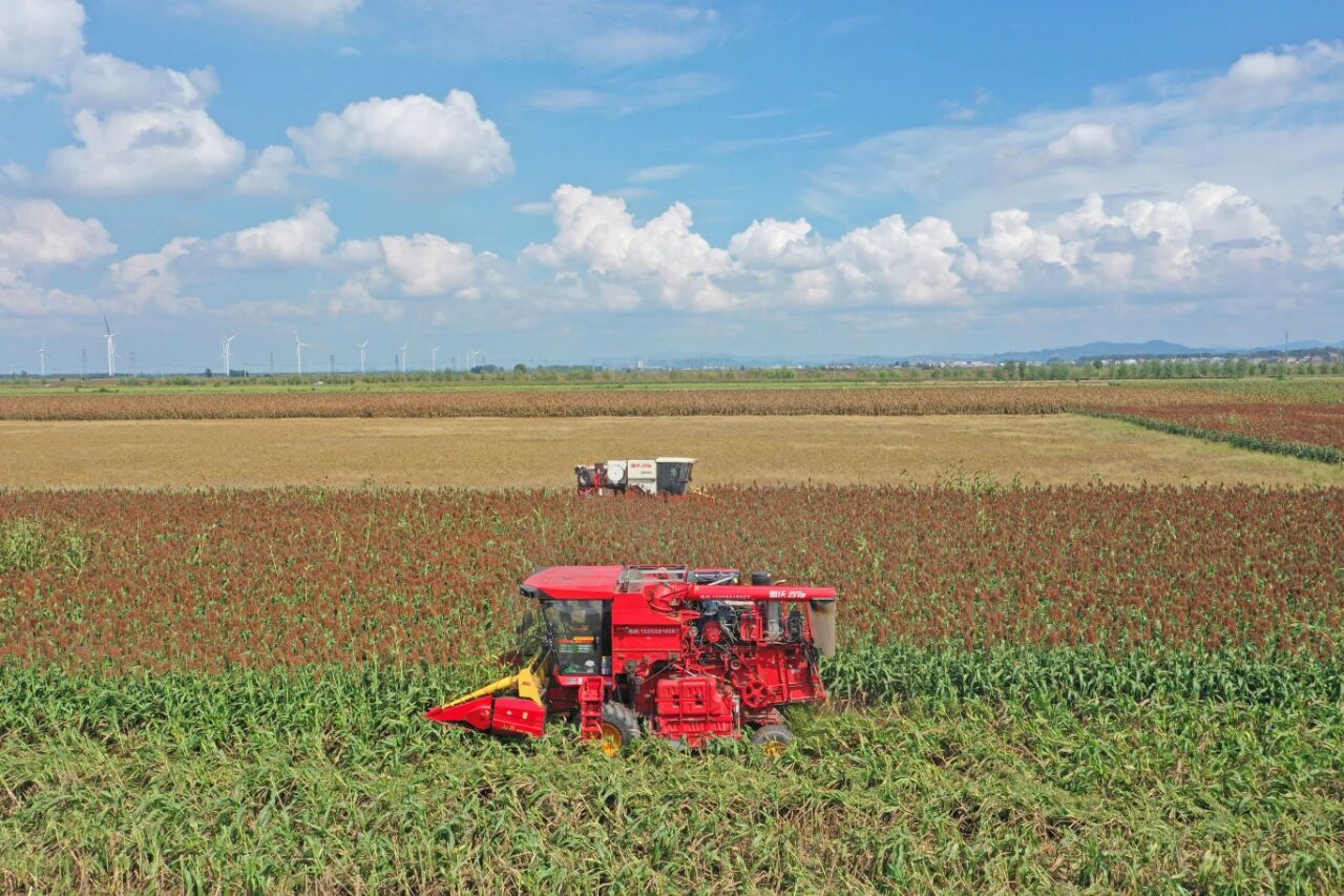 与此同时,在宿松县复兴镇的连片农田中,由华阳河农场公司提供服务的4万亩高粱也陆续成熟,进入集中收获期。农场公司正组织多台收割机全力开展抢收作业。
