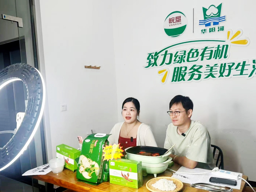 在华阳河农场抖音直播间里,两位青年员工正在开展抖音直播带货,他们手持“华阳河”牌大米和小龙虾,热情讲述产品特点与种植故事,将“田间到舌尖”的优质体验直接传递给消费者。每场直播可销售华阳河小龙虾、虾稻米两千元以上。今年以来,农场在生产端发力的同时,在销售端锐意创新,巩固线下渠道的基础上,全力拓展线上销售网络,通过直播、社群营销等方式延伸产业链、提升产品附加值,推动优质农产品实现优价销售。