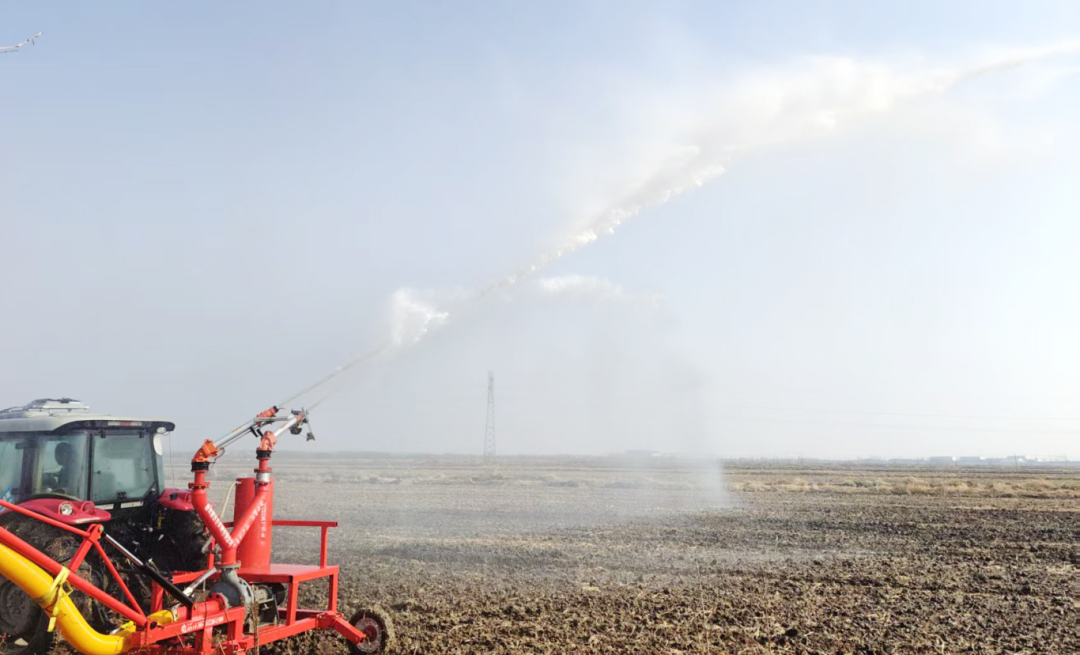 水家湖农场投入绞盘式、车载式自动喷灌机开展小麦喷灌作业(闫少强 摄)