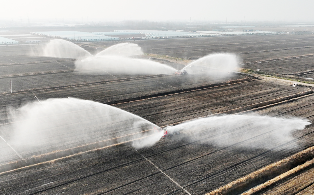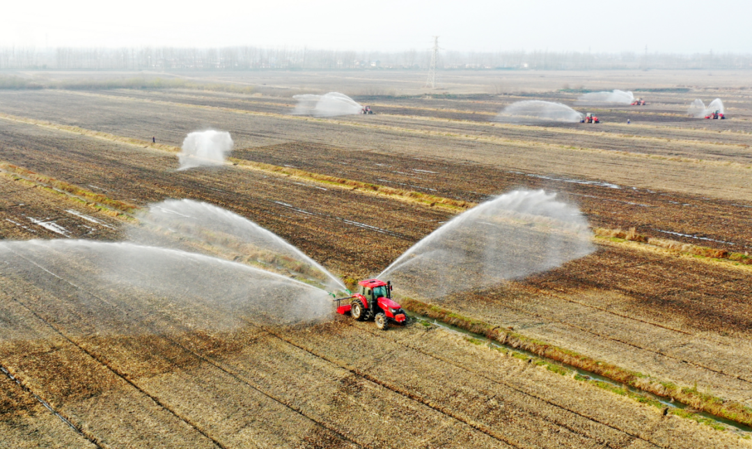 淮南农场第二管理区10号地开展小麦播种二次喷灌作业 (朱国 摄)