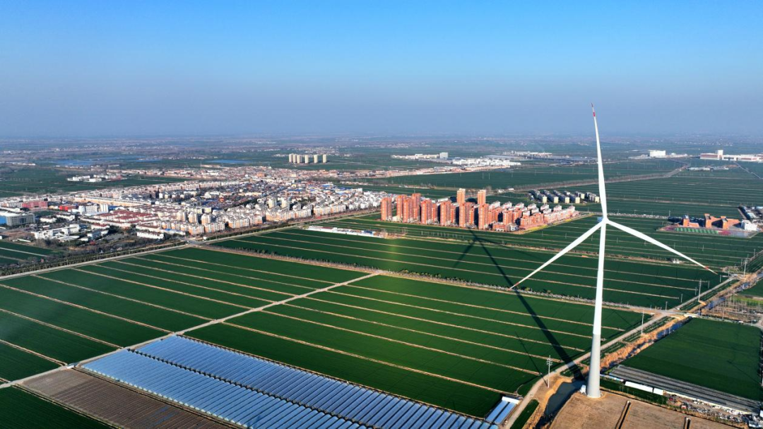 龙亢小城镇建设和现代化农场交融在一起 (周文娟 摄)